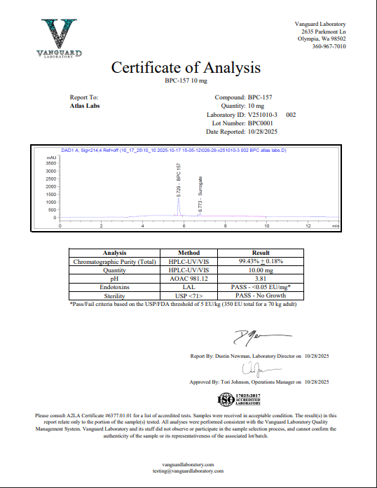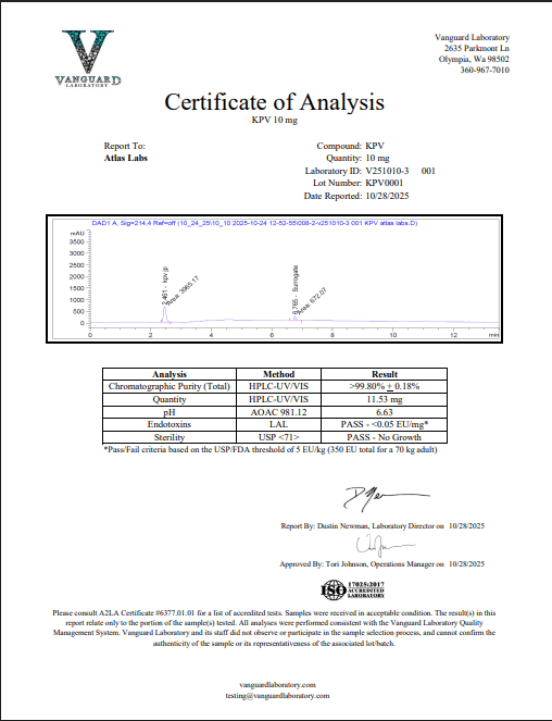 Atlas Labs is a U.S.-based supplier of premium peptides intended exclusively for laboratory research. Every batch undergoes intense quality control, including full Certificates of Analysis (COAs), endotoxin testing (LAL), and microbial (bioburden) testing; this ensures each batch has only the highest-quality research peptides in the industry.